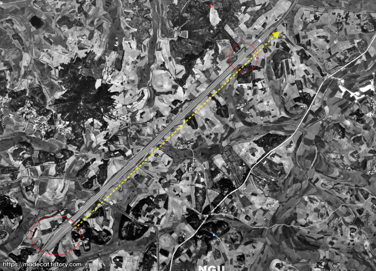 2차선 시절의 경부고속도로 위성사진입니다 사실 경부고속도로도 원래는 전구간 왕복 4차선으로 개통했죠 그러다가 80년대 후반부터 90년대 후반까지 확장공사하고 2000년대 중반에는 대전~대구