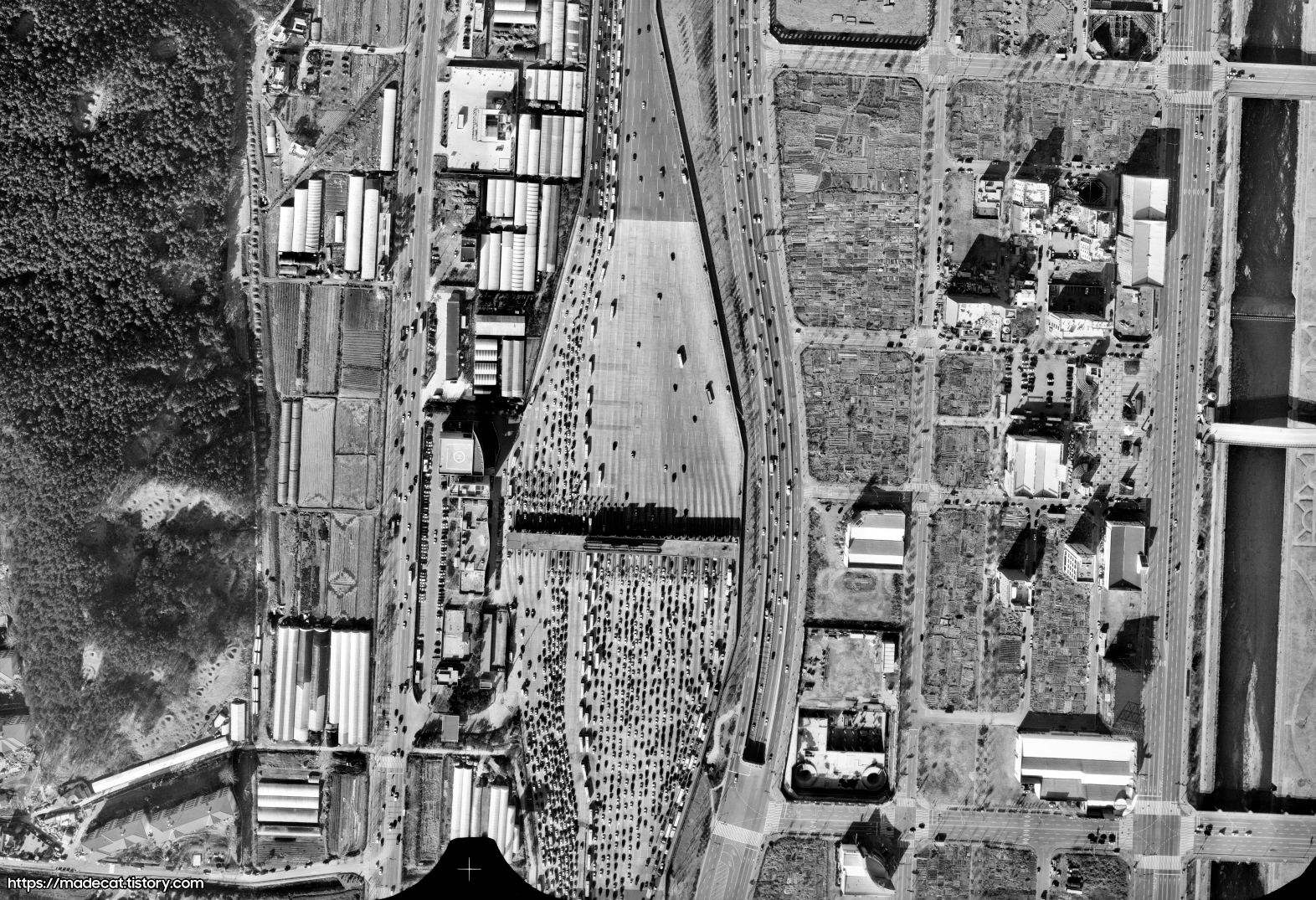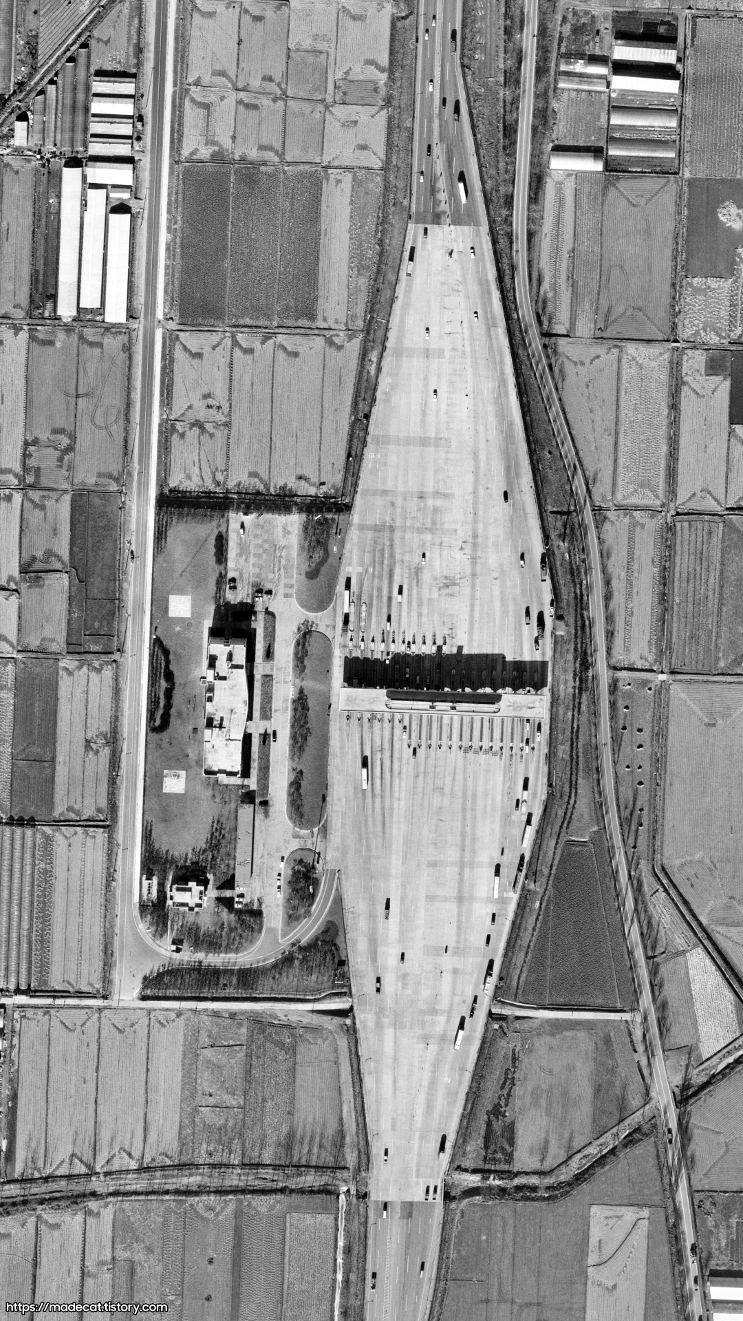 경부고속도로 서울 톨게이트의 과거 모습에 대한 위성사진입니다.