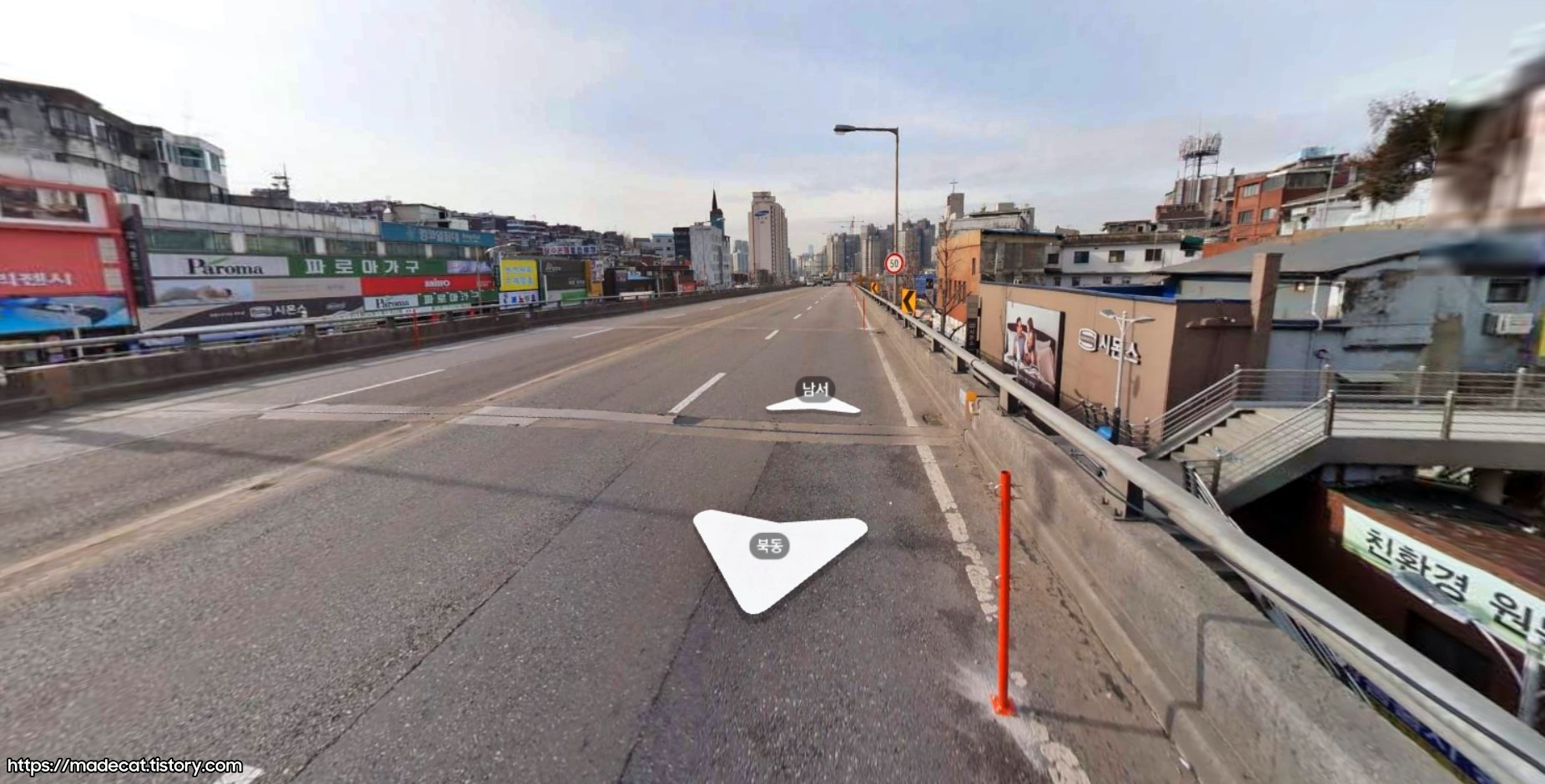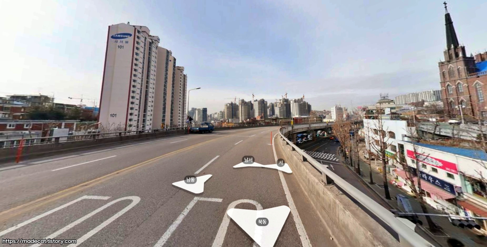 더불어 고가도로가 상당히 길게, 지금의 웨딩타운 정류장 앞까지 이어져있음을 볼 수 있네요.
