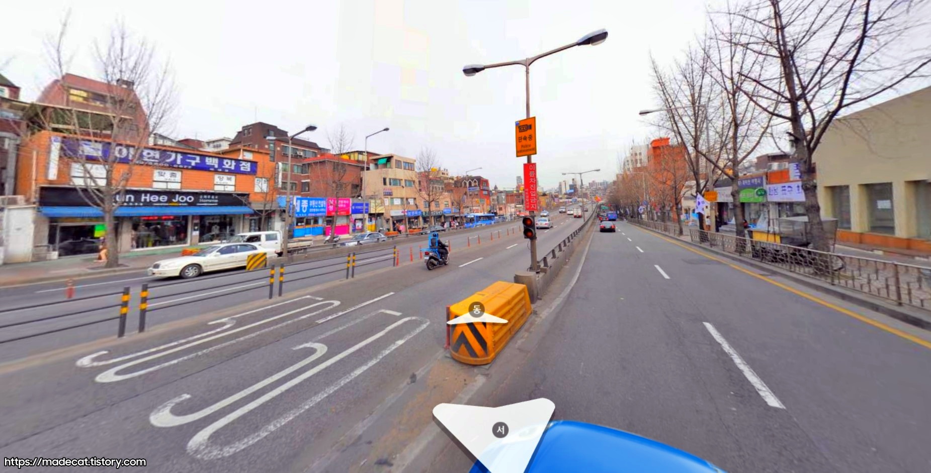 신촌로 쪽은 중앙차로가 아예 없었습니다. 우측 전용차로로 운영했으나, 철거 후 14년 하반기에 중앙차로로 개조.
