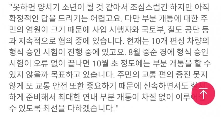 시운전을 거친 후 8월 27일 개통에는 큰 지장이 없을 예정이라고 합니다.