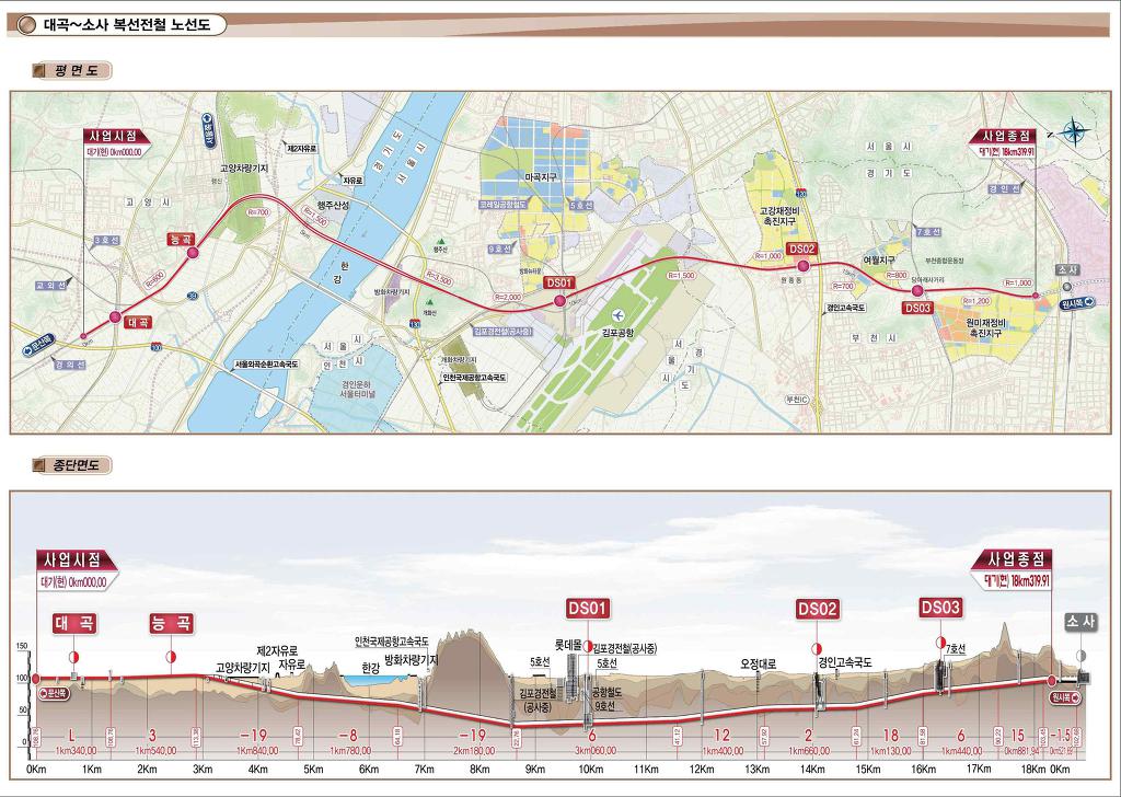 대곡소사선은 수도권 전철 서해선(소사~원시)의 북쪽 연장 구간으로,